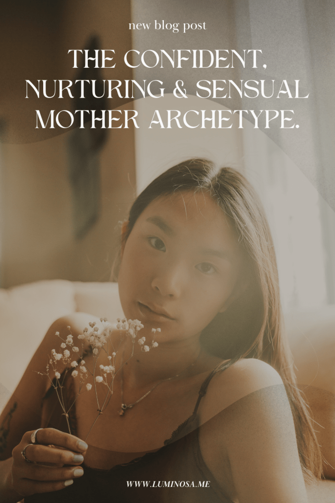 Mature and confident, deeply rooted in herself, accepting who she is compassionately. During this time of maturity a woman usually becomes more connected to who she is and what she values, through healthy boundaries, introspection and self-nurturing love. In her fullness she is glowing, sensual and abundantly fertile not only in regards to motherhood – but in whatever she desires to give birth to (think creative projects, business endeavours, etc.). Connected to her body, to God, and to her inner strength — her intuition.